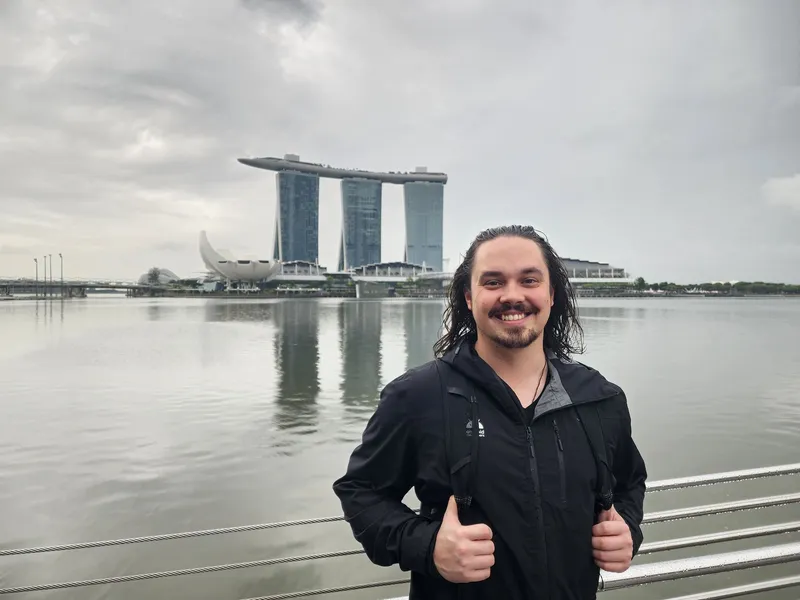 Thursday saw us venturing out to explore Singapore by foot, heading along the river and past the Merlion to Marina Bay Sands and Gardens by the Bay. What we didn’t anticipate was how ineffective a raincoat is in tropical downpours 🤦♂️. Five minutes in, and we’re absolutely drenched. We pushed through it though, and got some great drowned-rat shots looking across the harbour!