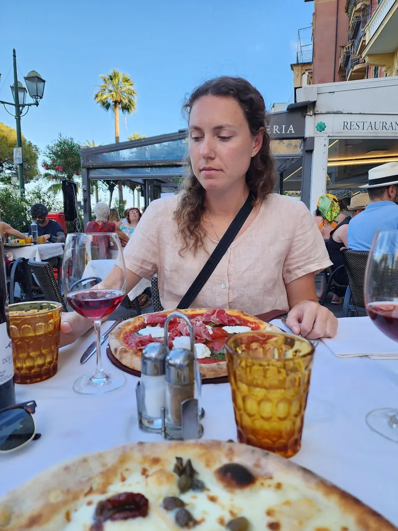 Our first day, once arriving, was quiet. We explored the town a little, got some recommendations off the guy hosting us, and found somewhere to eat for dinner. We picked an unassuming pizza place, which ended up being the best pizza we’ve had in Italy! We then packed in for the night, but were kept awake by the sound of fireworks outside - turns out we’d arrived smack bang in the middle of Ligurian celebrations for the Lady of Montallegro!
