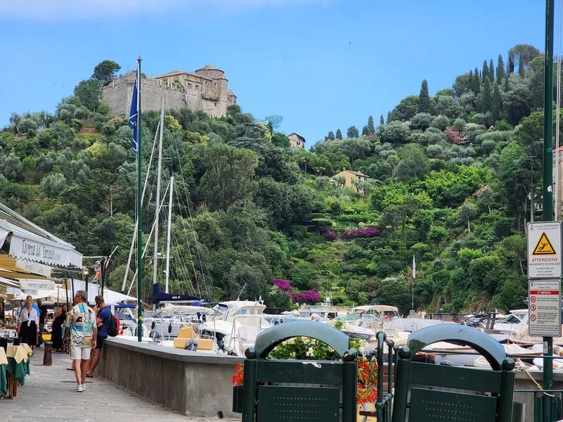 The next day included checking out more recommendations, including a small beach seemingly not known to tourists, before getting scrubbed up and hopping on a ferry to Portofino. This short stint on the water was filled with sights of mega yachts, too large for a berth in Portofino itself, as well as some pretty stunning views of the landscape. We arrived in Portofino with a few hours to kill before dinner so headed off for a walk to Portofino rock, of which a bar sits atop. We grabbed a drink, ate the accompanying snacks, and watched vessels slip past as the time ticked away.