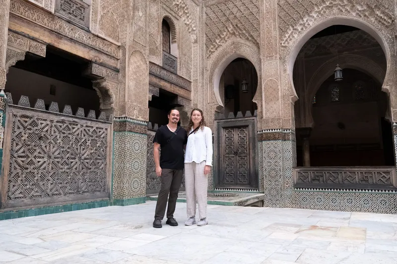 We left London and touched down in Fes, the cultural capital of Morocco. We had a bit of a chaotic time getting a taxi to our accommodation as we couldn’t speak Arabic and only minimal French (the other common language in Morocco) but we eventually got on the way. We were staying in the Medina in Fes, basically every city in Morocco has a Medina and it is effectively the term for the old part of the city predating cars and bikes and it is made up of narrow alleyways and very dense concrete buildings. Our taxi driver obviously couldn’t take us into the Medina so it was a bit confusing trying to find our way, but we somehow navigated the alleys and got to our Dar (Moroccan guesthouse).