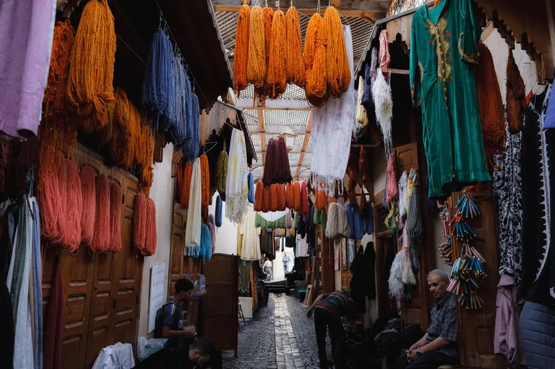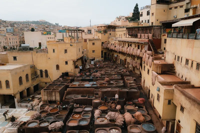 Our guide also took us to the Chouara leather tannery, something that Fes is well known for and still uses a traditional handmade process to this day. We stood overlooking heaps of different pools filled with the various dyes and liquids required in the tanning process, watching the backbreaking work of moving the animal hides between the pools. Before going up to have a look, we were given a sprig of fresh mint to sniff and we soon found out why. Turns out they use pigeon poo, cow pee and quicklime to clean and soften the skins before they are dyed - and it stunk!