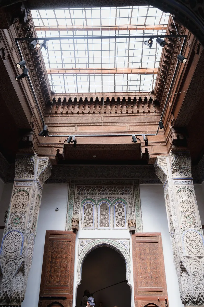 We were also staying in the Medina of Meknes, so we navigated a simpler Medina than Fes and arrived at the Riad we had booked. A Riad is what we would consider a hotel, whereas the Dar that we had stayed in in Fes only had about 6 rooms and was more like what we would consider a BnB. On arriving at the Riad we were given Moroccan mint tea in a beautiful lounge area with mosaic tiles, carved plaster and wood adorning the walls. The reception team were also really helpful and kind here and recommended a delicious dinner place in the Medina before leading us there so we didn’t get lost!